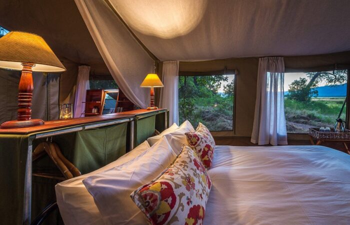 As at all Robin Pope-owned camps, the atmosphere is intimate, the camp staff friendly and professional, and the service highly personalized. There is a separate thatched dining area and sitting room, with a bar and a panoramic view. In keeping with authentic feel of early safari days, heavy hotel-silver cutlery is used, and dinners are served by candlelight.