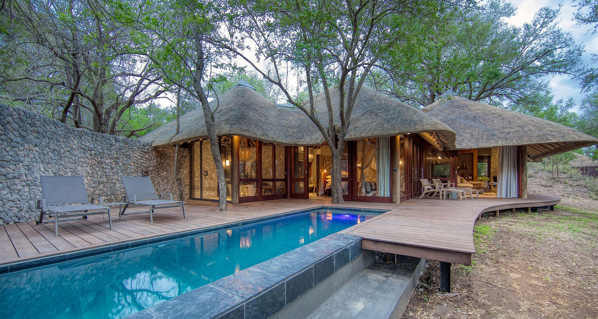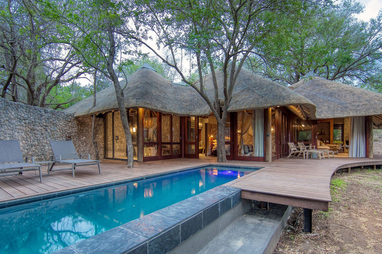 Dulini Leadwood has only four suites and is the ultimate safari choice for discerning travellers in search of luxurious exclusivity and solitude. Nestled in the confluence of the Sand and Mabrak Rivers, Dulini Leadwood offers an intimate and serene getaway that is completely at peace with the bush that surrounds it. The staff of Dulini Leadwood Lodge have been hand selected to make the experience second to none. From the housekeeping staff to the chef, the hosts, and the guides; the human element makes this experience.