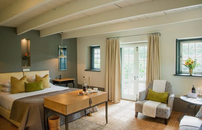 Your accommodation, The Owner’s Cottage at The Grande Provence offers luxurious and en-suite accommodation for a maximum of 10 Guests in five suites, including a deluxe Honeymoon Suite. The rooms are beautifully appointed and spread between a small grouping of historic Cape Dutch buildings. In the main building of the Cottage are a spacious lounge and a modern, fully equipped kitchen and conservatory.