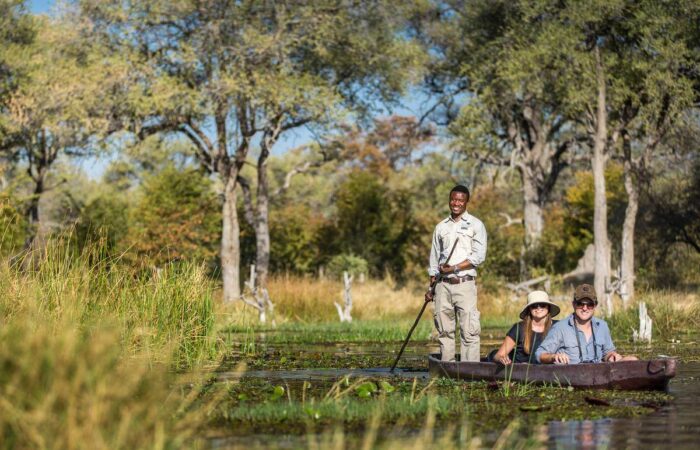 Explore the magnificent environment on game drives, walking safaris, and mokoros (traditional dugout canoe), indulge in some bush pampering in the privacy of your suite, or just soak up the sights and sounds of the magnificent African bush.