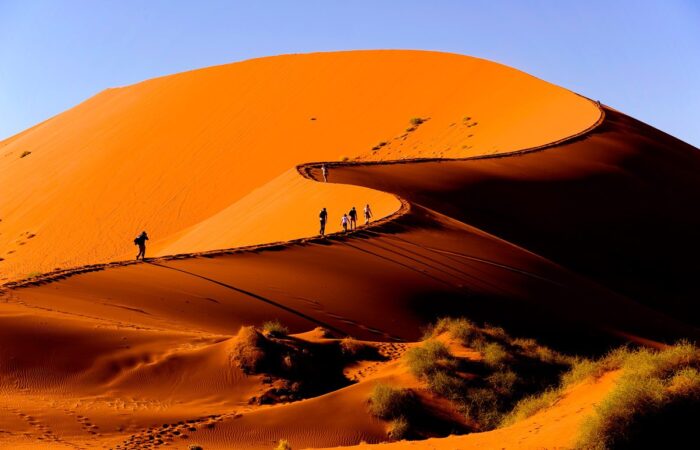 Today is an early rise. Much of the day is spent climbing the highest sand dunes in the world. Big Daddy offers a strenuous climb, but the view along the crest is completely worth it. Upon descent, the whispering sands of the Namib lead to the ancient camelthorn trees of Dead Vlei – one of the most photographed areas in Sossusvlei.