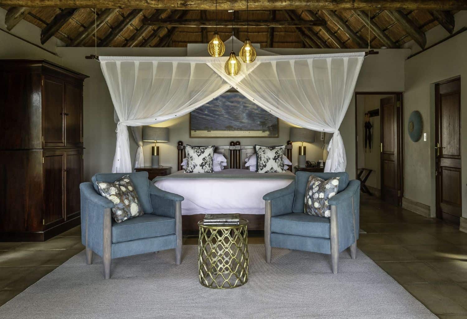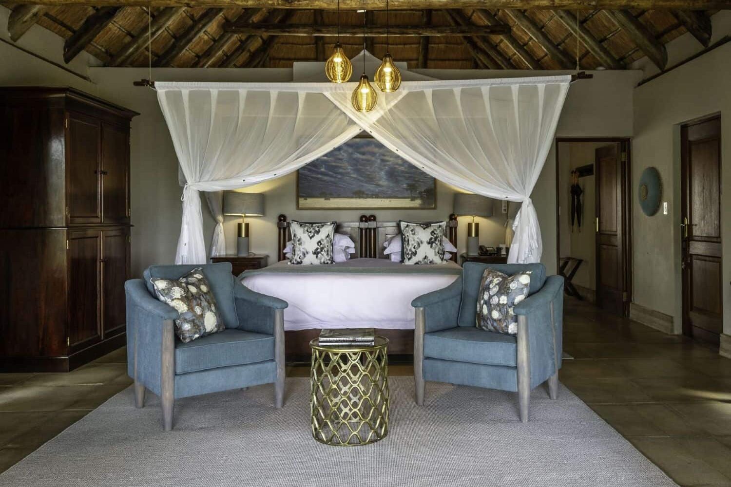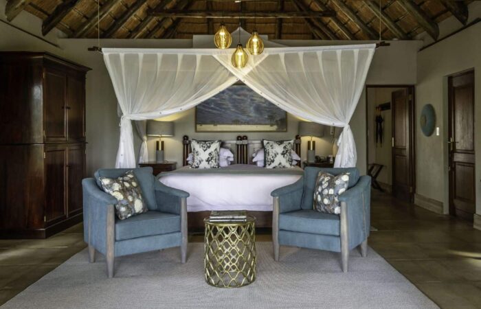 Savanna has 9 beautifully appointed suites. The thatched Savanna Suite consists of two separate en-suite bedrooms, each with its own deck and plunge pools. These rooms lead into a central elegantly furnished lounge, ideal for families or a small group wanting privacy and exclusivity.