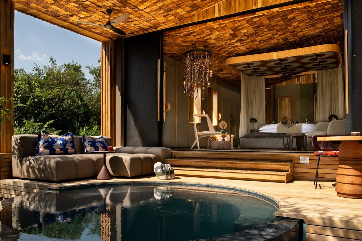 Your stay at &BEYOND Grumeti Serengeti River Lodge set in the remote Western Serengeti on a by-water of the Grumeti River is known for its dramatic wildebeest crossings and enormous Nile crocodiles.