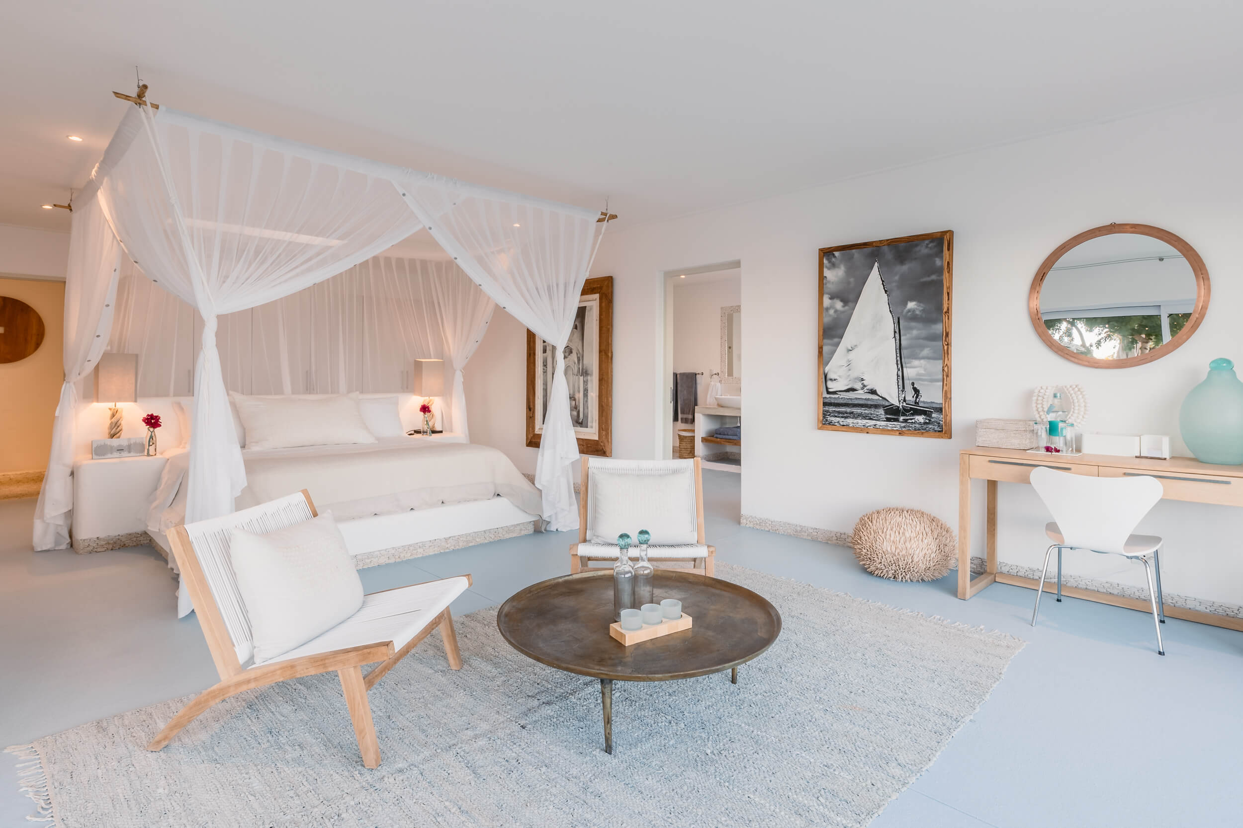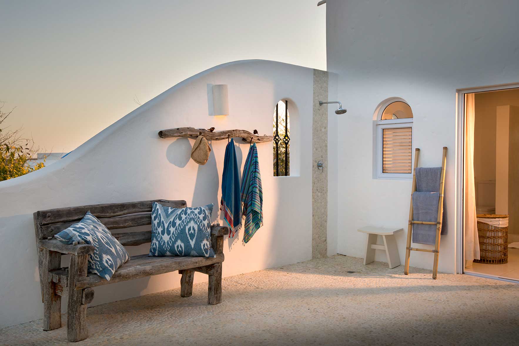 Santorini is blanketed by the Indian Ocean – a staircase from the villa leads directly to the warm waters of the white sandy beach. Your family accommodation, The Chapel has private beach access, as well as a private rim-flow plunge pool and outdoor dining area on the patio ideal for private family dinner under the African Sky.